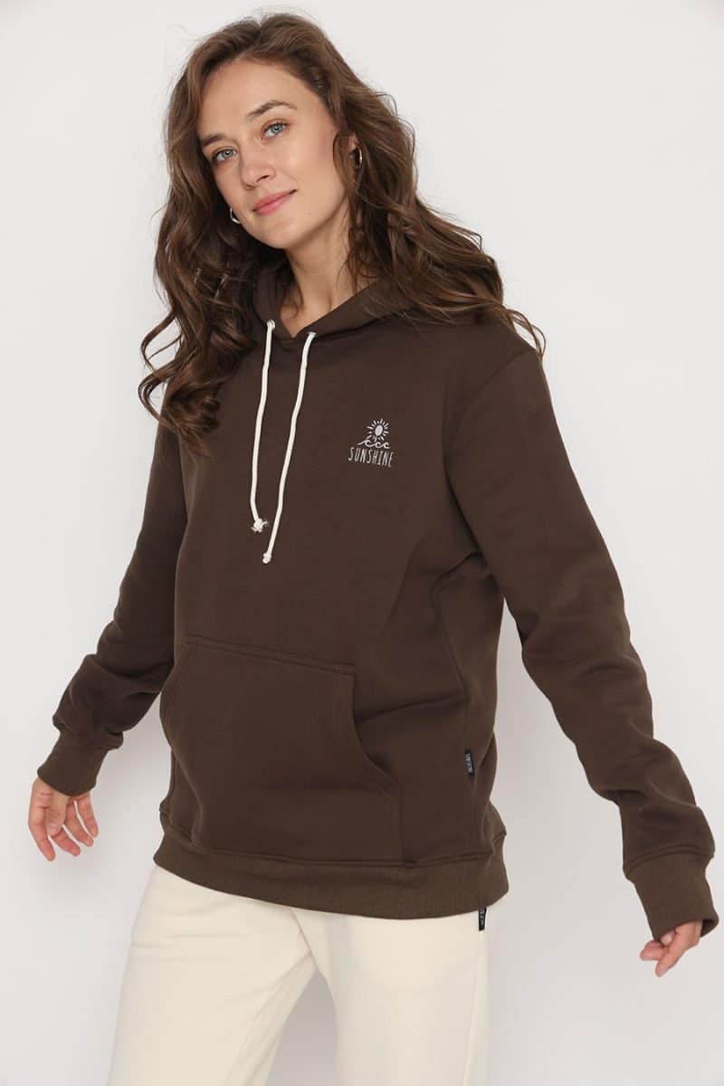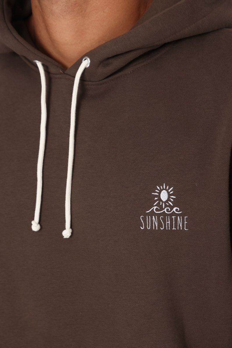 "קפוצ'ון סאנשיין נעים ורך עשוי 80% כותנה ו20% פוליאסטר. גזרה מושלמת נוחה ומחמיאה עם רקמות וגרפיקות של אמנים ישראלים בצבעים מנצחים. דוגמן לובש מידה L שוקל 80 קילו 1.78 גובה .