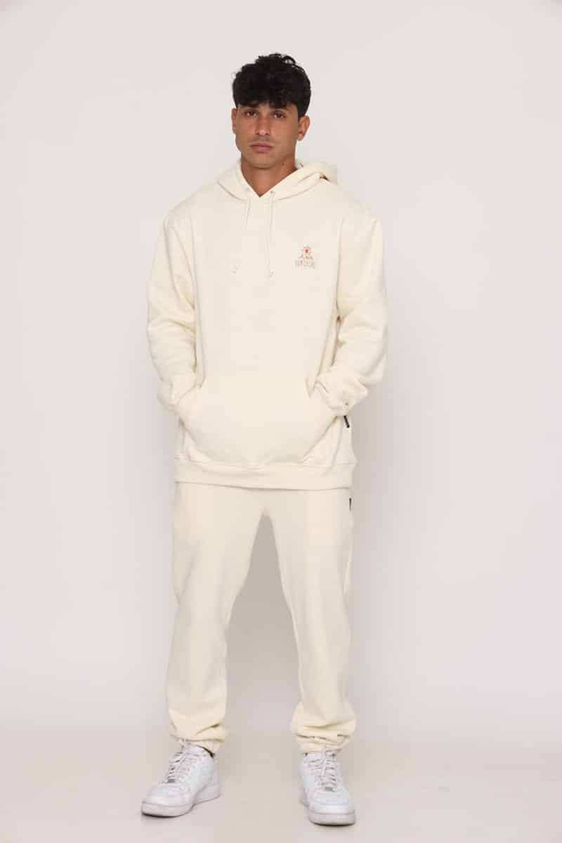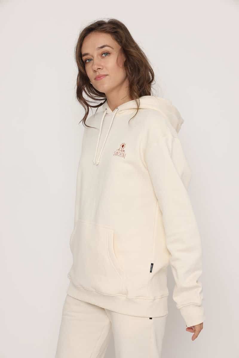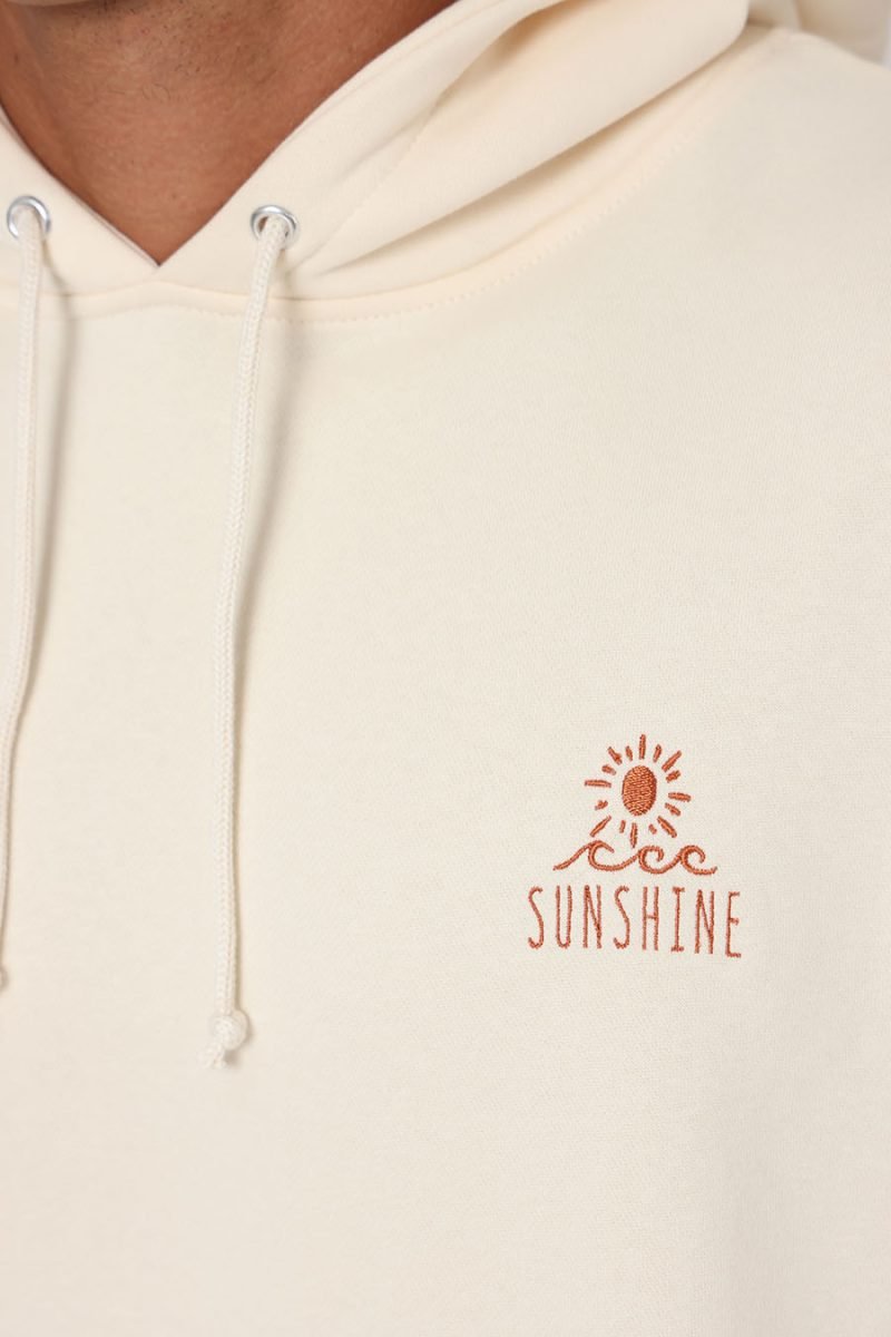 "קפוצ'ון סאנשיין נעים ורך עשוי 80% כותנה ו20% פוליאסטר. גזרה מושלמת נוחה ומחמיאה עם רקמות וגרפיקות של אמנים ישראלים בצבעים מנצחים. דוגמן לובש מידה L שוקל 80 קילו 1.78 גובה .