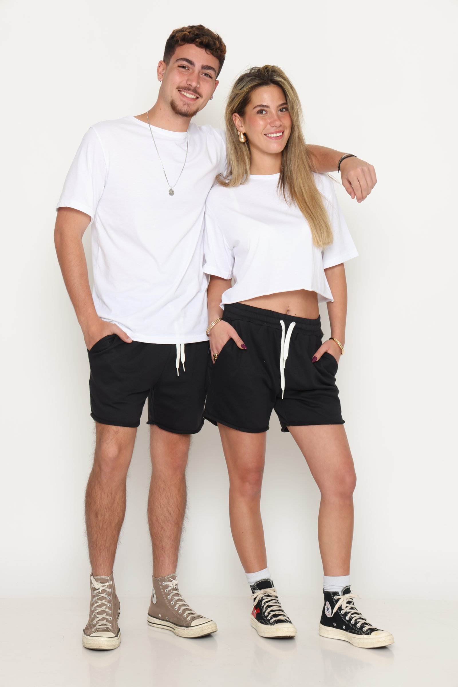 מכנס טרנינג קצר עשוי 100% כותנה פרנצ' טרי איכותי. מכנס בייסיק נוח ספורטיבי ומחמיא. שרוכים להתאמה אישית וסטייל לא מתאמץ.