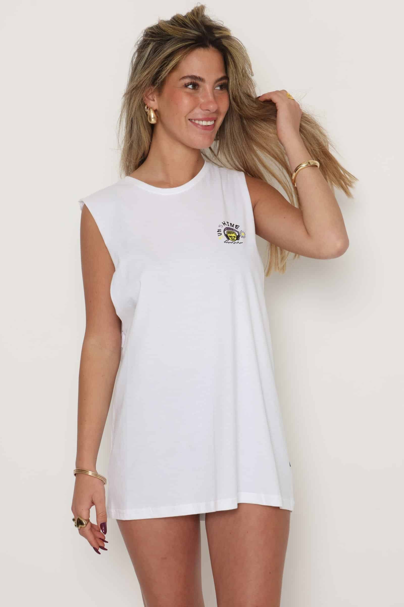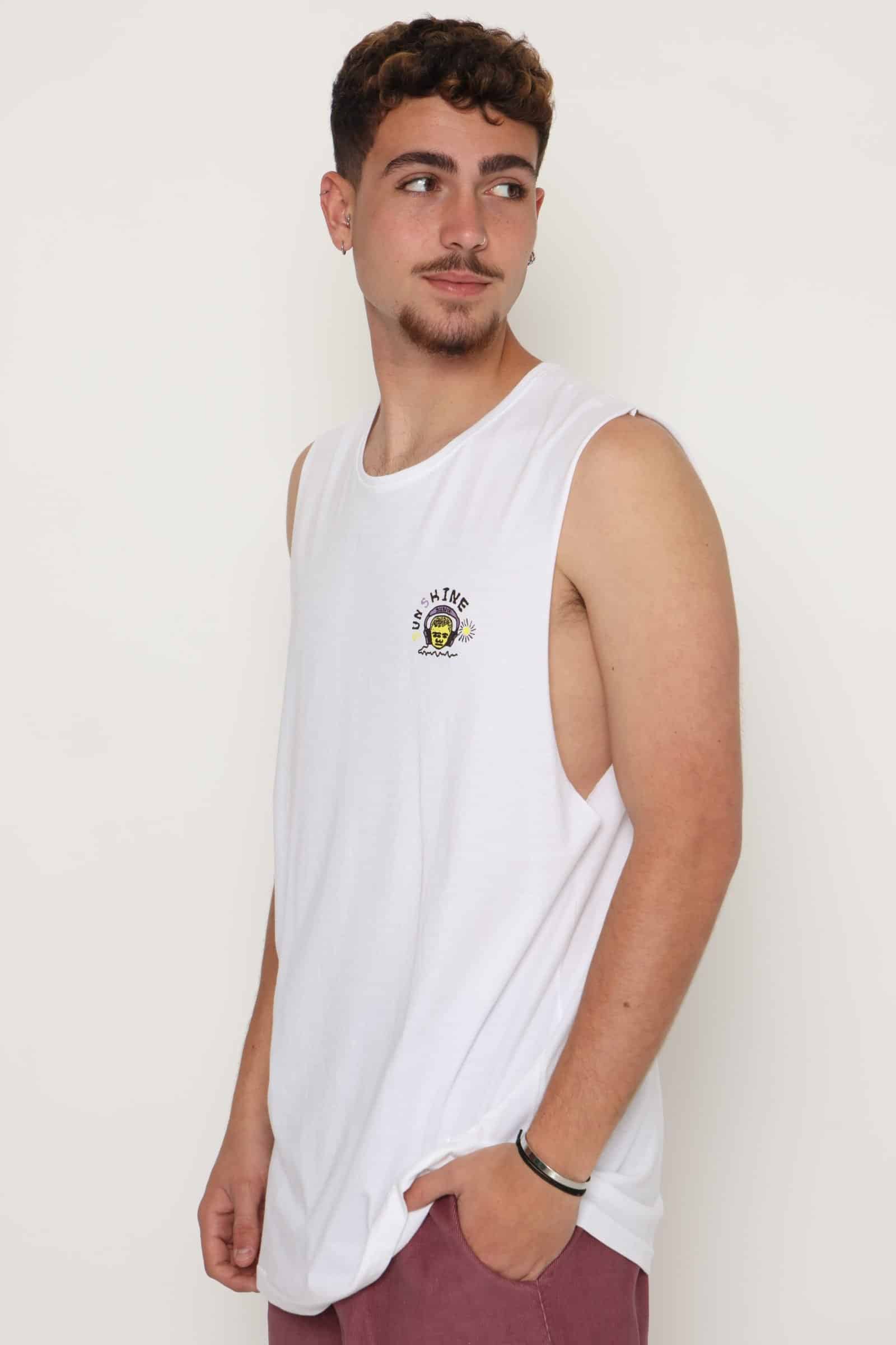 גופיית סאנשיין עשויה 100% כותנה איכותית. גזרה מנצחת ומחמיאה לכל המינים. עם עיצוב וציור מקורי בעבודת יד של סאנשיין ואמנים כחול לבן.