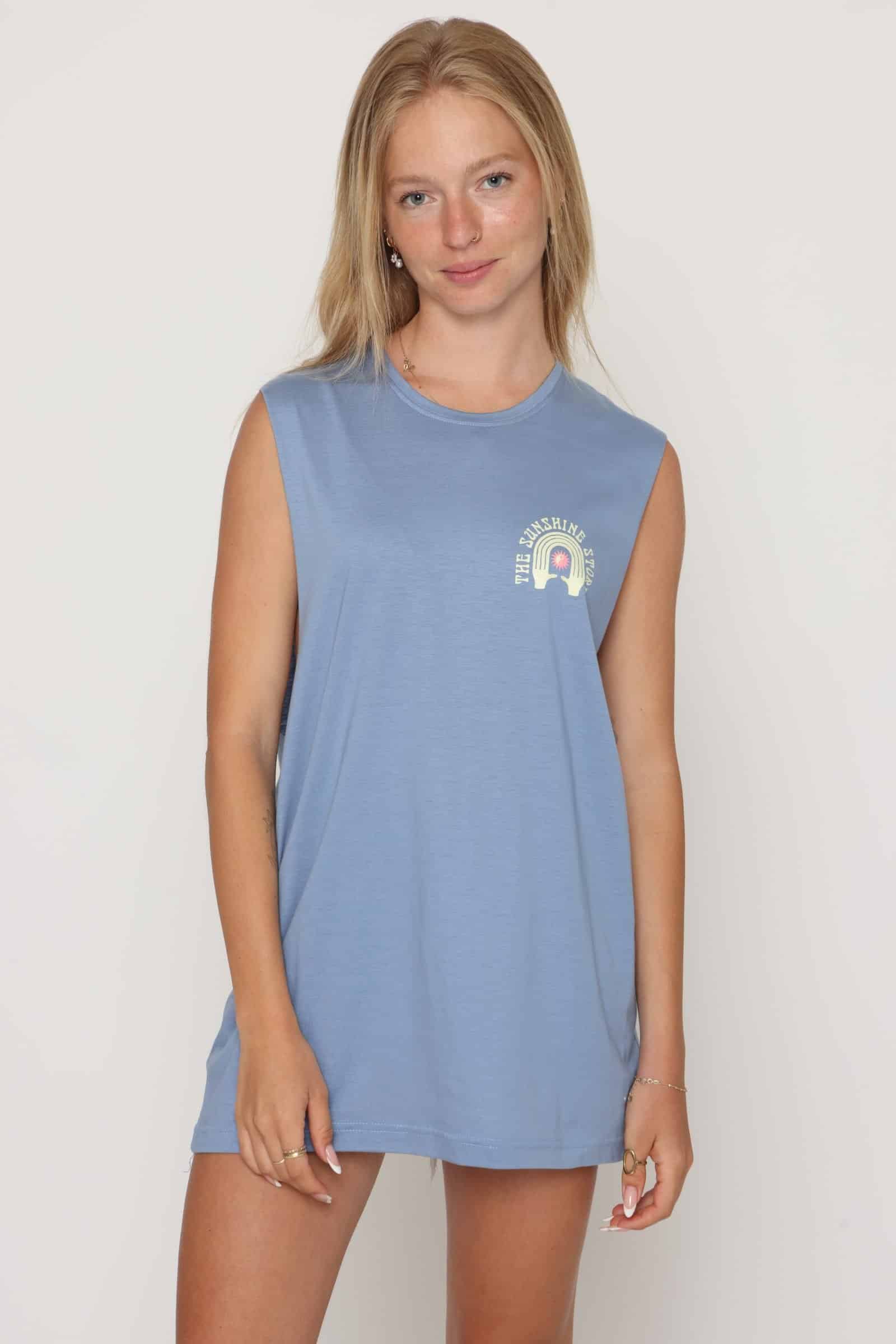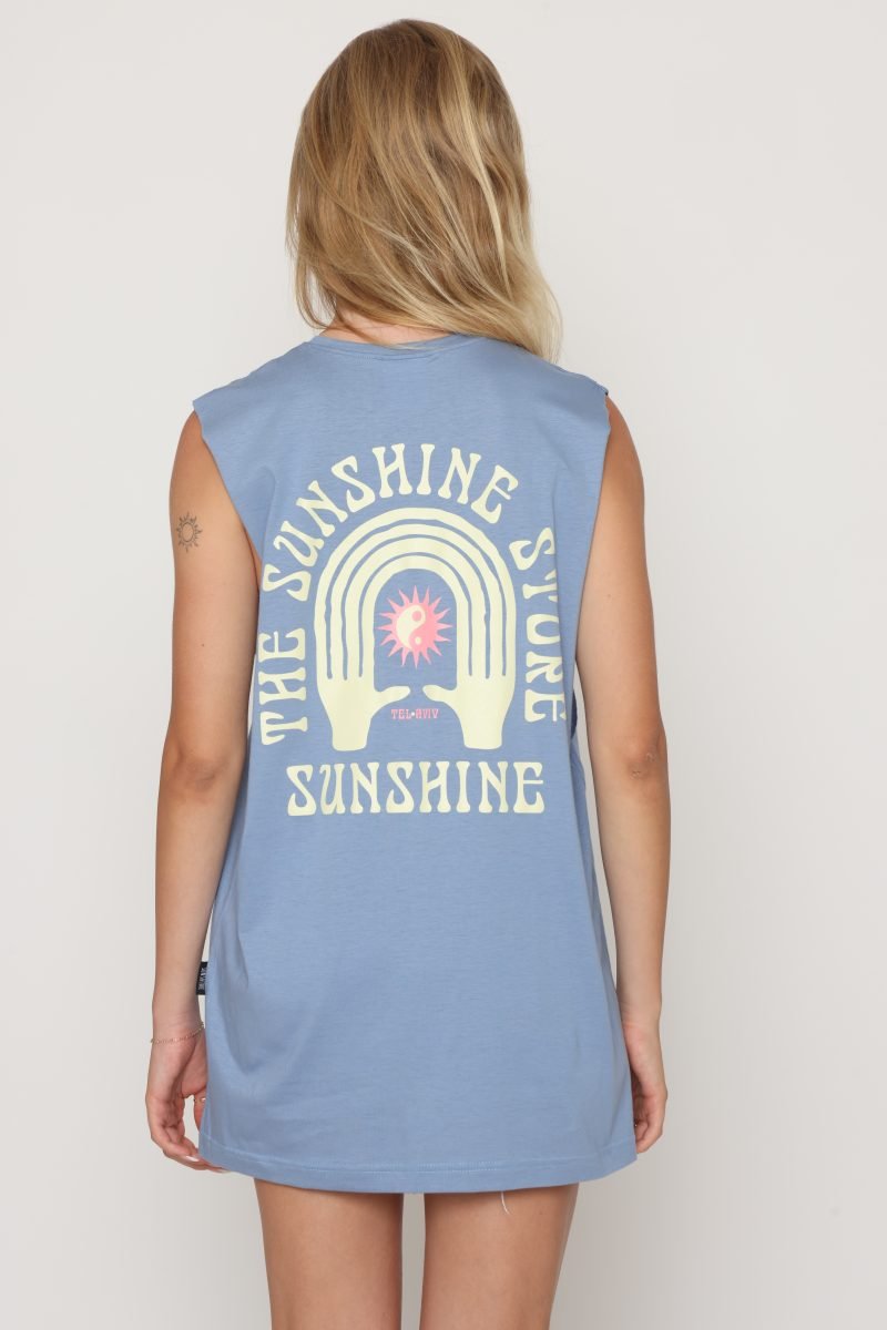 גופיית סאנשיין עשויה 100% כותנה איכותית. גזרה מנצחת ומחמיאה לכל המינים. עם עיצוב וציור מקורי בעבודת יד של סאנשיין ואמנים כחול לבן.